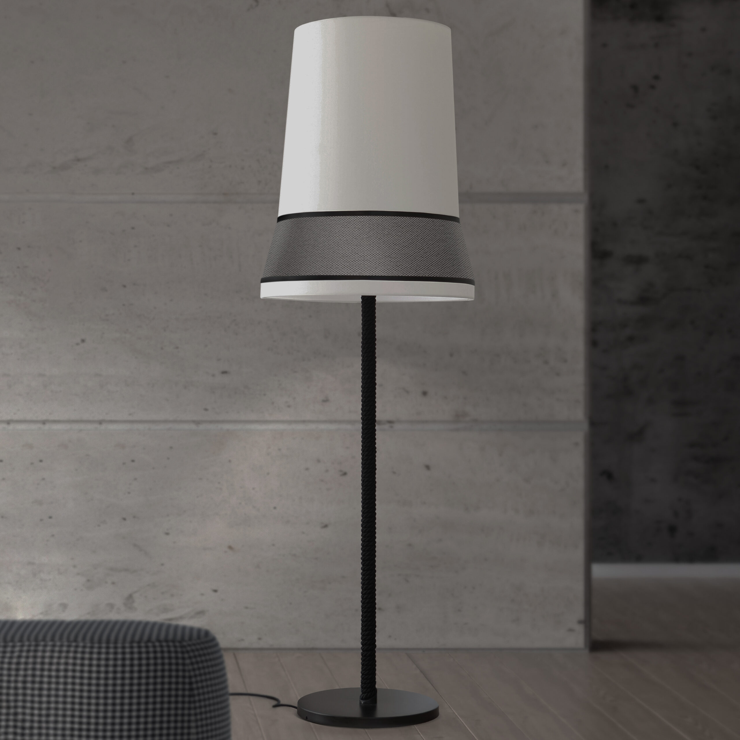 Iconic product inspired by the famous hat worn by Audrey Hepburn in the movie "Breakfast at Tiffany's". Designed for exclusive and elegant locations such as lobbies, boutiques, clubs, restaurants and also for classy residential environments. Audrey collection, composed by two table versions, the floor and the suspension versions, is designed as a true style exercise. There are three shades that join together: the cotton on the upper and lower part, Sale & pepe fabric on the central part and the black cotton trim. The stem is covered with a braided silk cord.