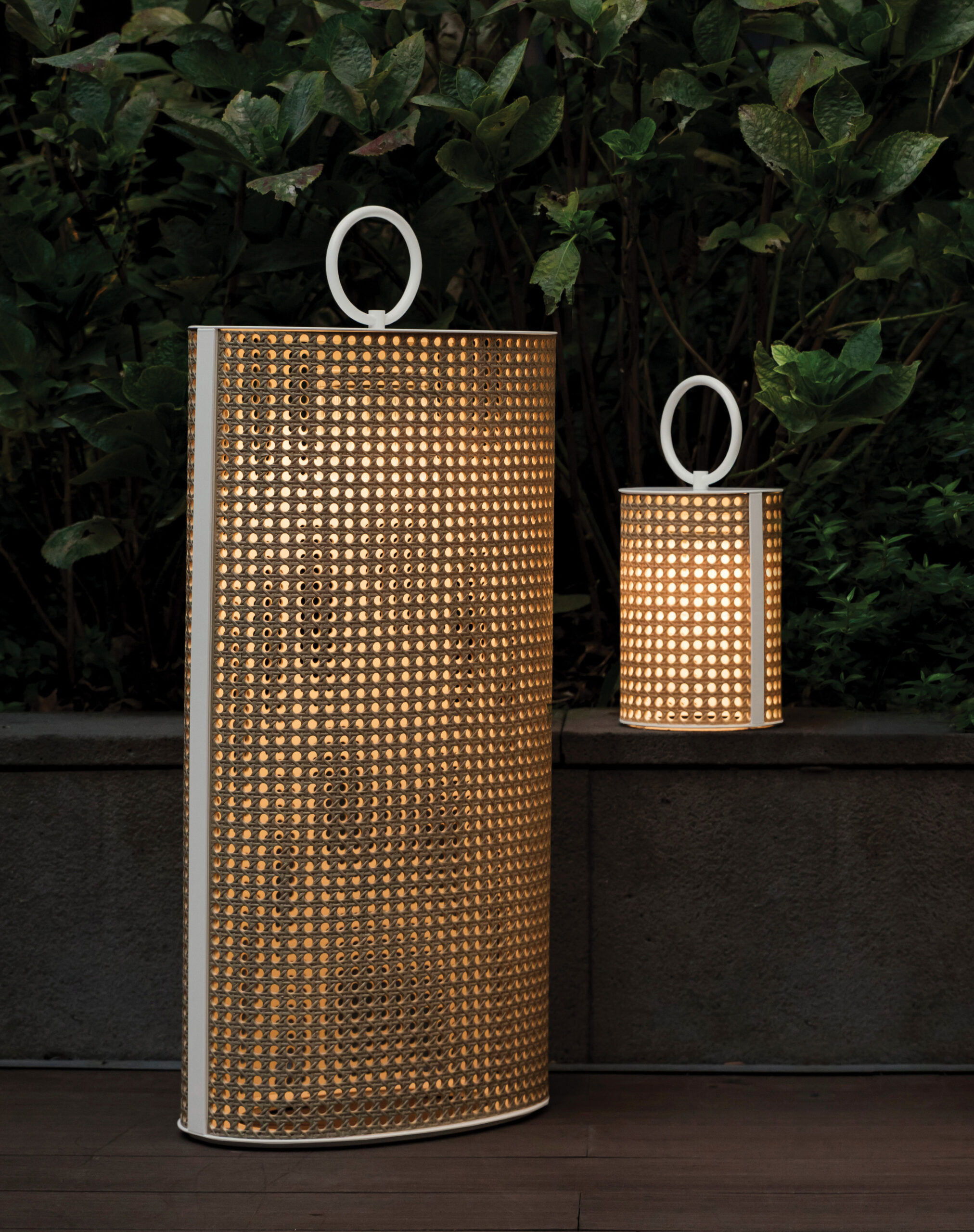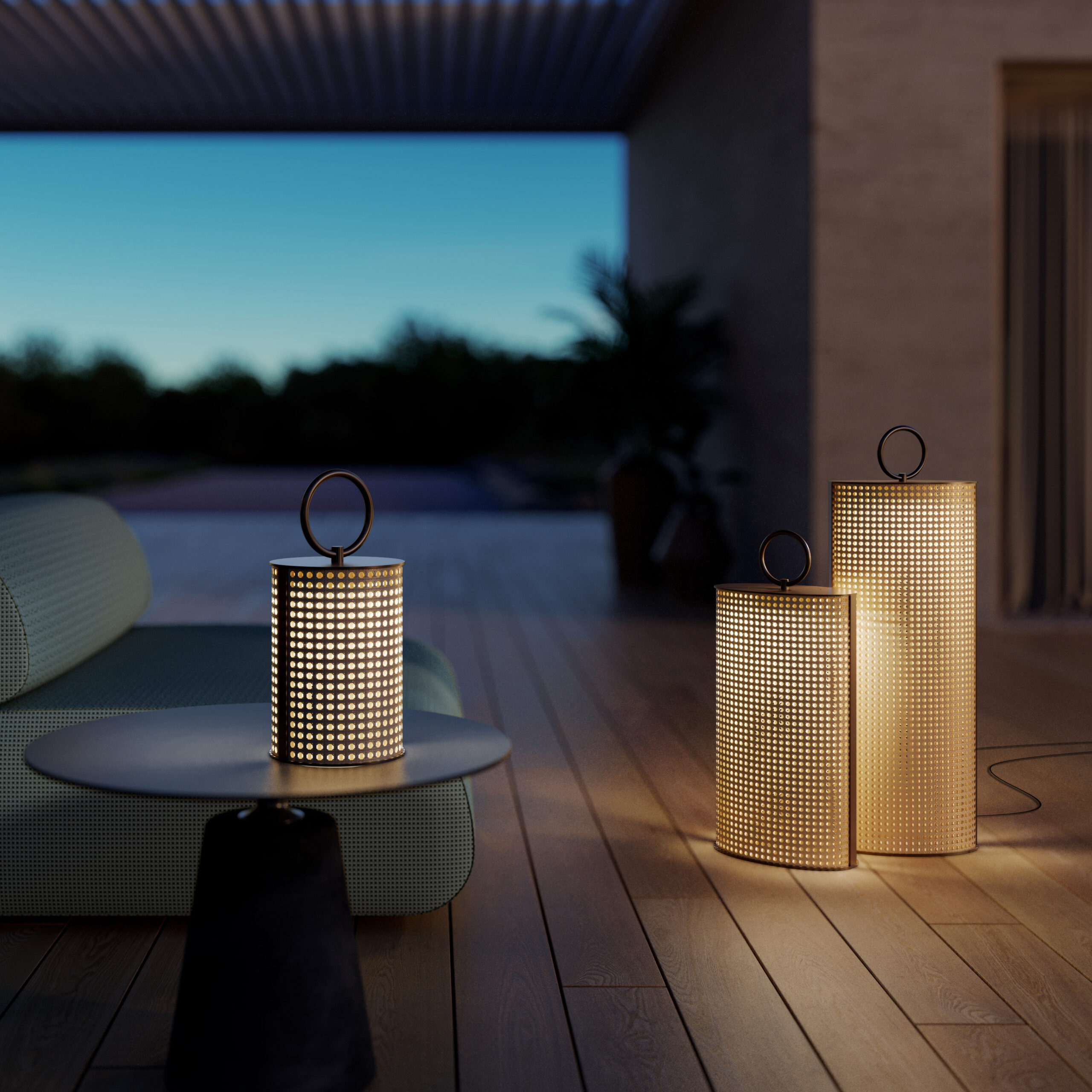 Equipped with an LED bulb and IP65 protection rating, the wired Clara retains the finishes of the battery-operated version and is supplied with an IP68 connector, guaranteeing maximum water resistance. Its sophisticated design, characterized by a Vienna straw–effect texture in waterproof, UV-treated resin, makes it an ideal choice for those seeking versatile lighting with strong visual impact.