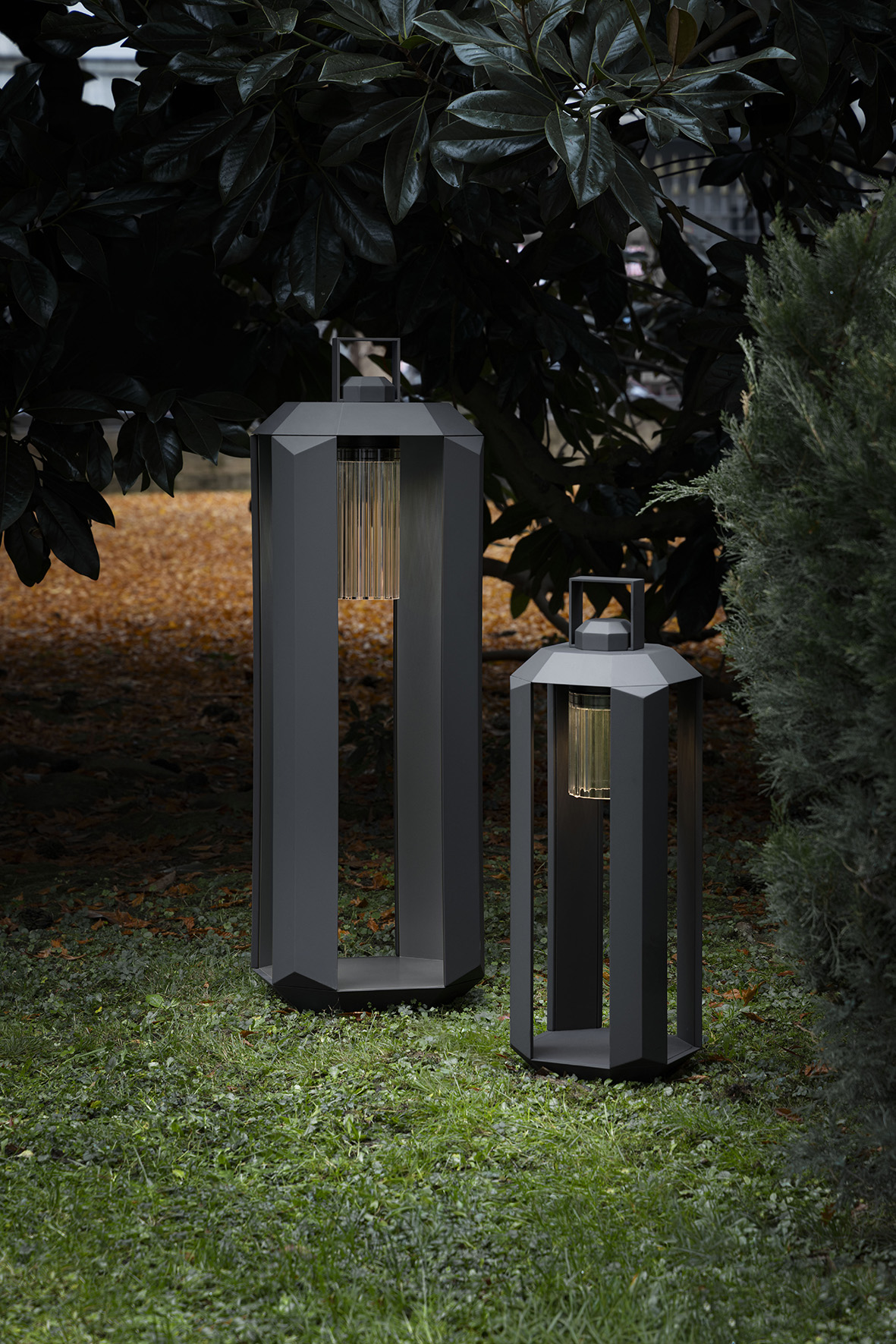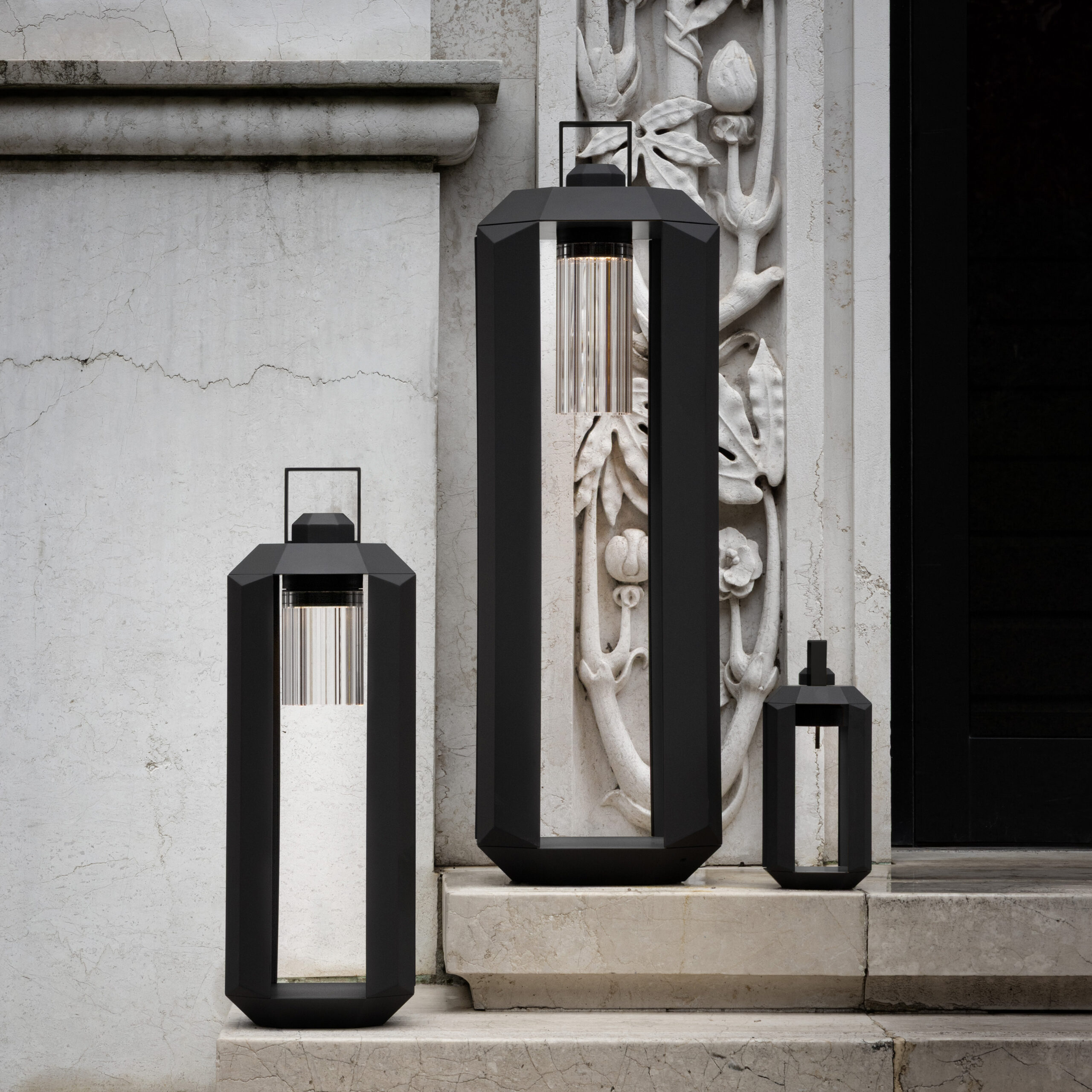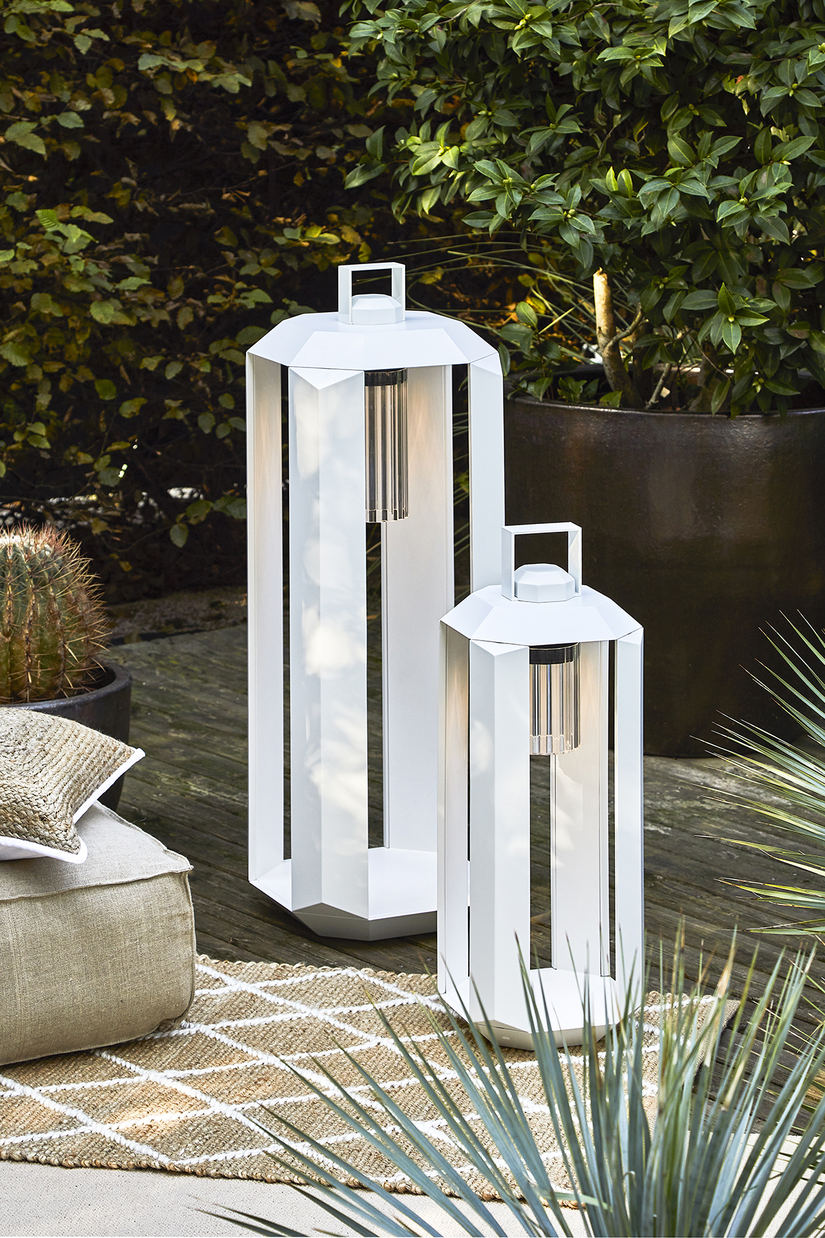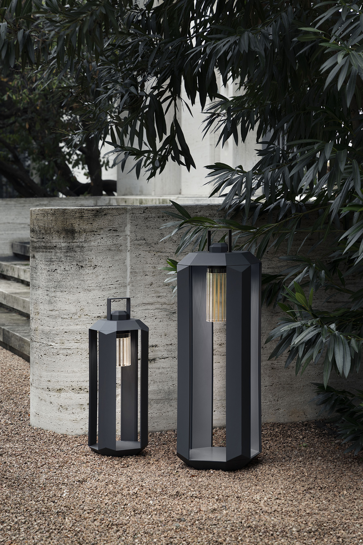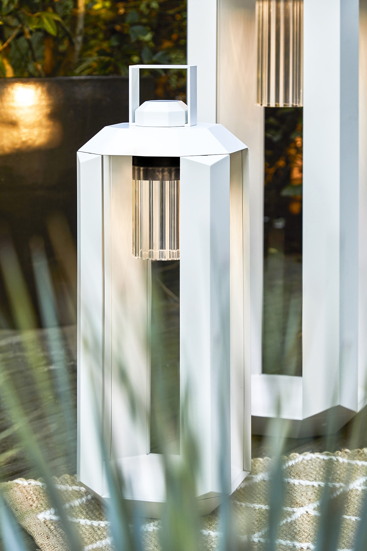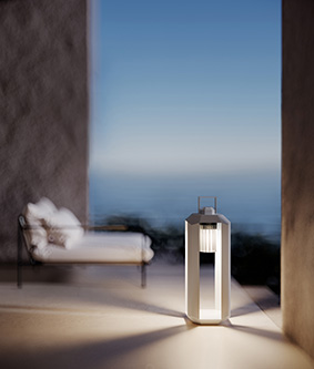 Cube Outdoor, a collection designed by Massimiliano Raggi, elegantly reinterprets the portable lantern and is available in total white and all bronze finishes.