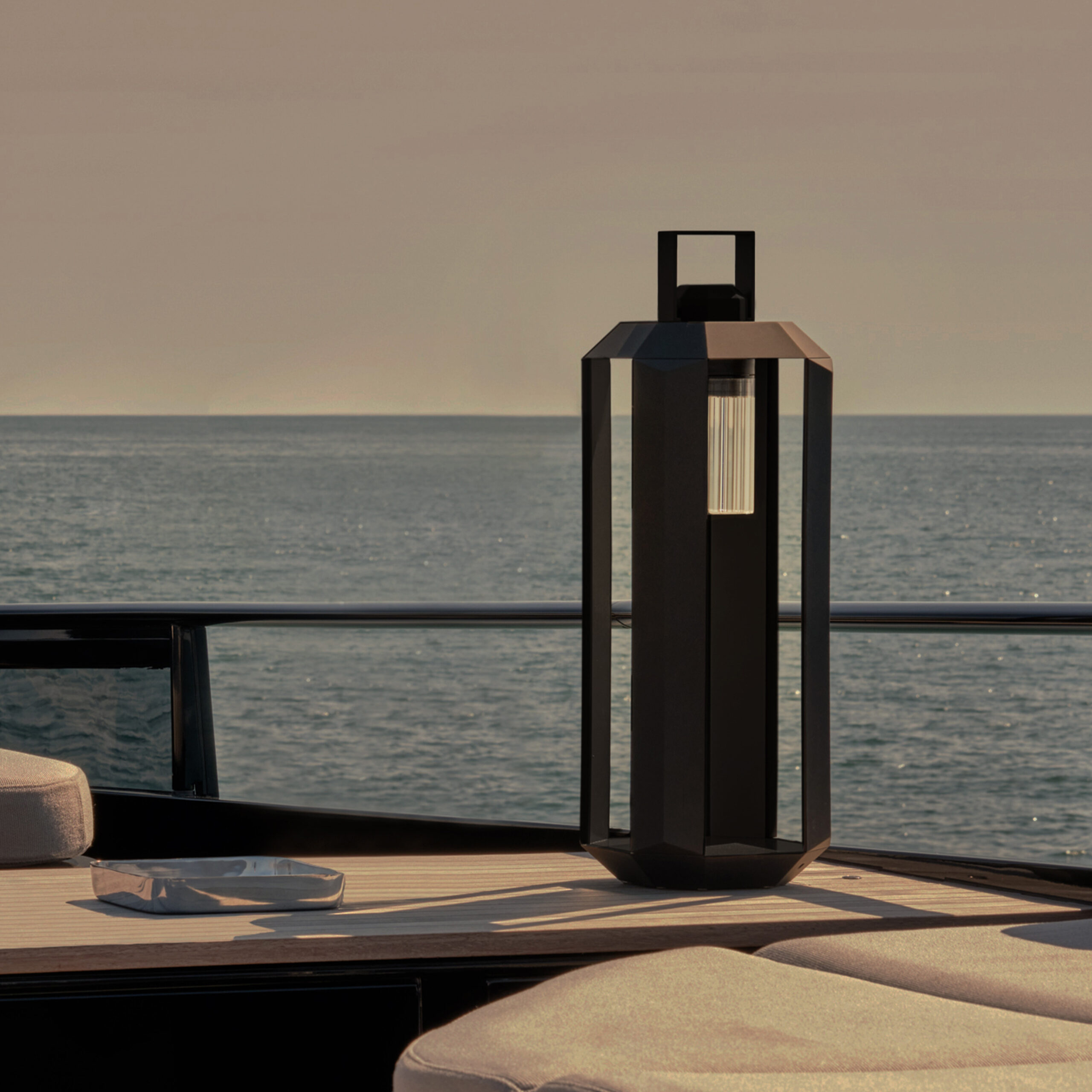 In the large version, it becomes a small luminous architecture, ideal for poolside areas and patios, while the small version offers a soft light and easy portability. An expression of Contardi’s philosophy of bringing interior design outdoors.