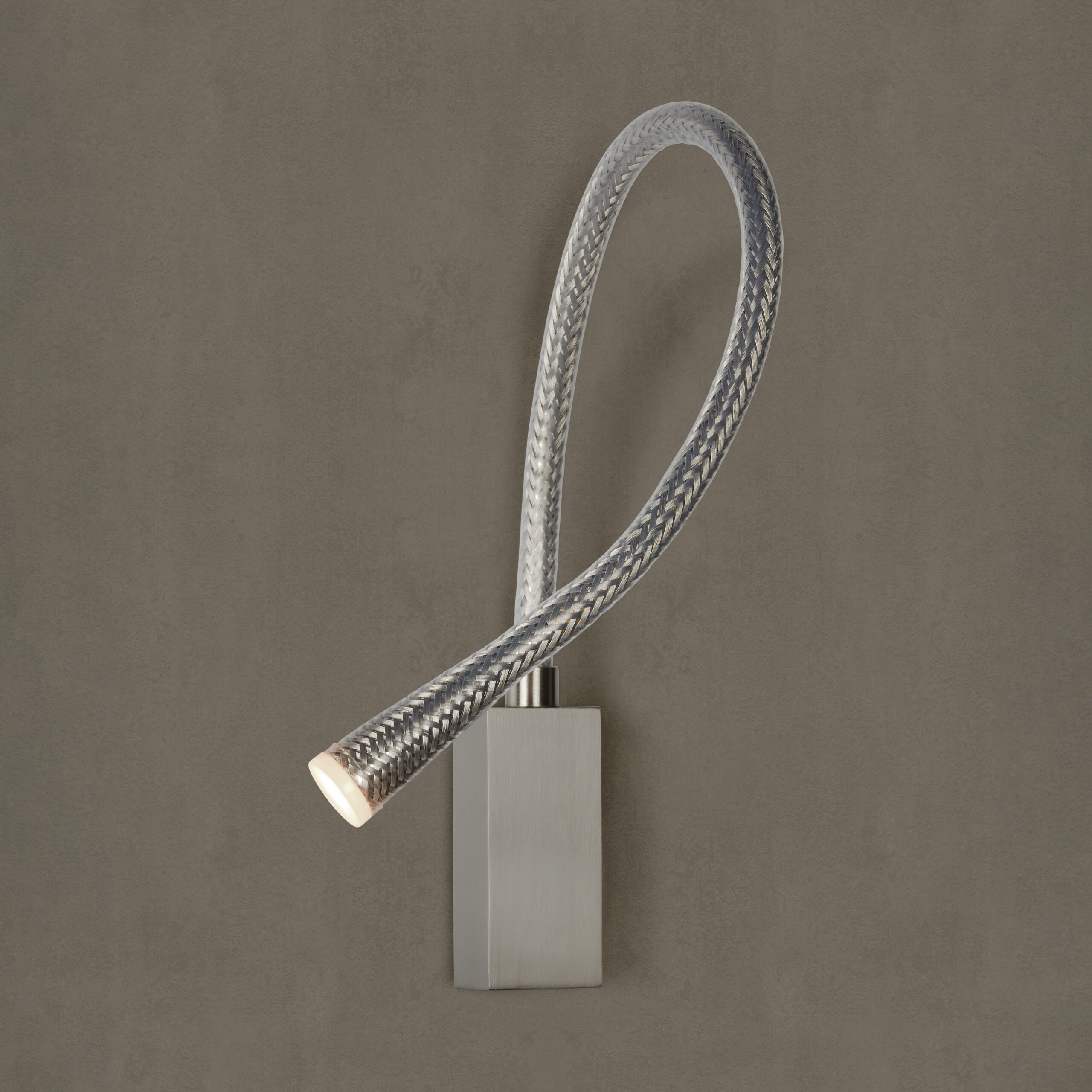 Flexiled, a historic and iconic product in Contardi's collection, is available in two variants: with a flexible arm covered in leather with double side stitching or encased in a steel mesh wrapped in a transparent sheath. It offers customization options in colors and sizes.