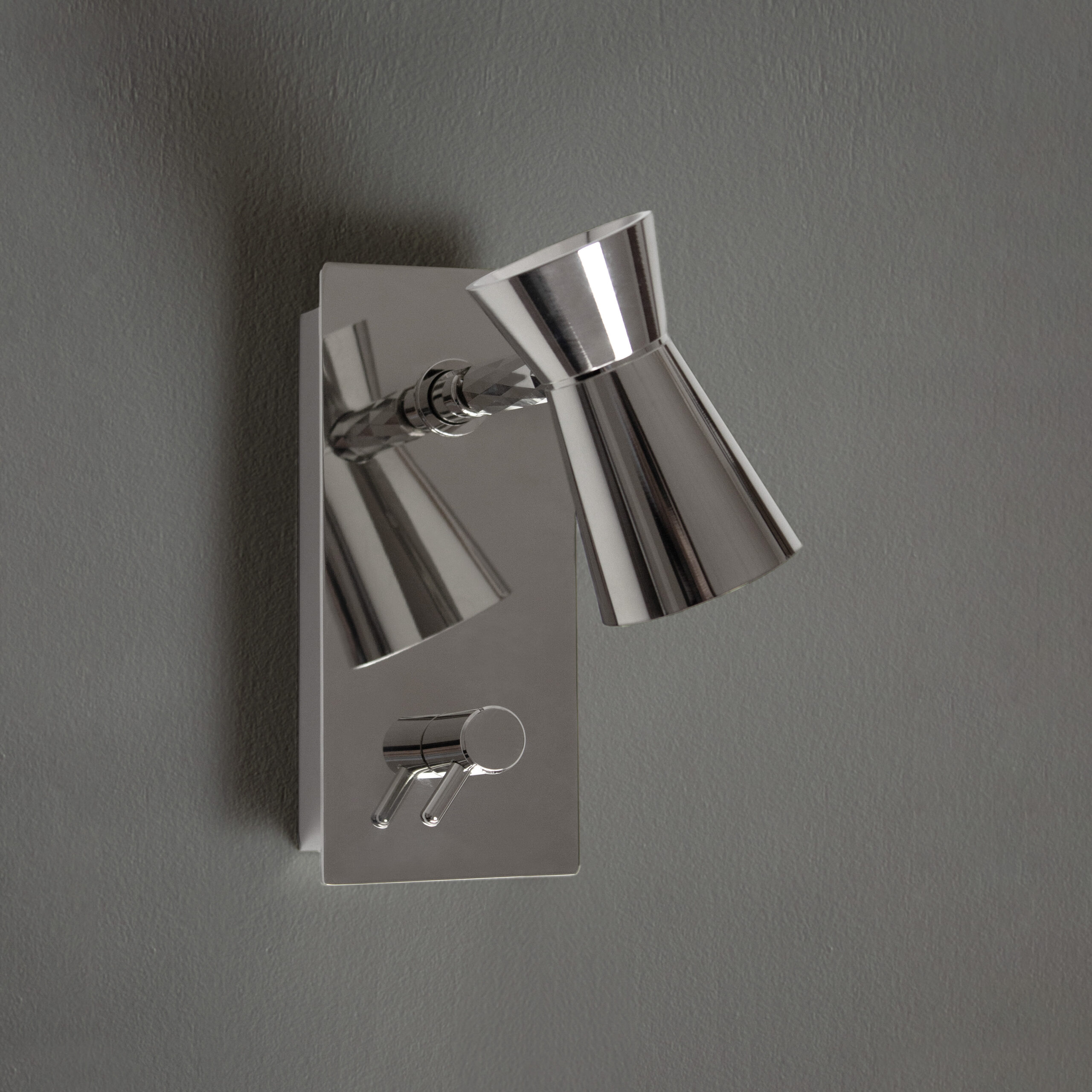 An innovative reading lamp, born from the idea of a portable and luxurious product to meet specific space and installation needs; this makes it suitable for contexts such as yachts and superyachts, historic buildings, or exclusive boutique stores. The head recalls a cocktail jigger (as the name G+T, or gin & tonic, suggests), and the arm is in brass covered with braided leather. Available in the battery version with a magnetic connection, or wall-mounted. The battery-powered model is rechargeable via the USB Type-C port (which in the wired version is used for charging smartphones or tablets).