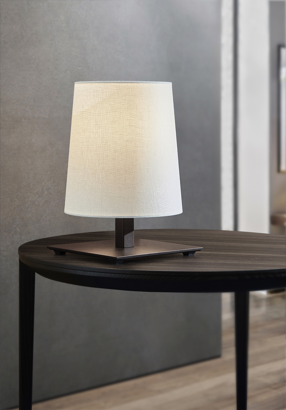 Heritage revisits a classic Contardi light. Though the structure is unchanged, the circular base expresses plain but modern forms and lines. The lampshades are offered in white cotton and the product can be customised with coloured trimmings if desired.