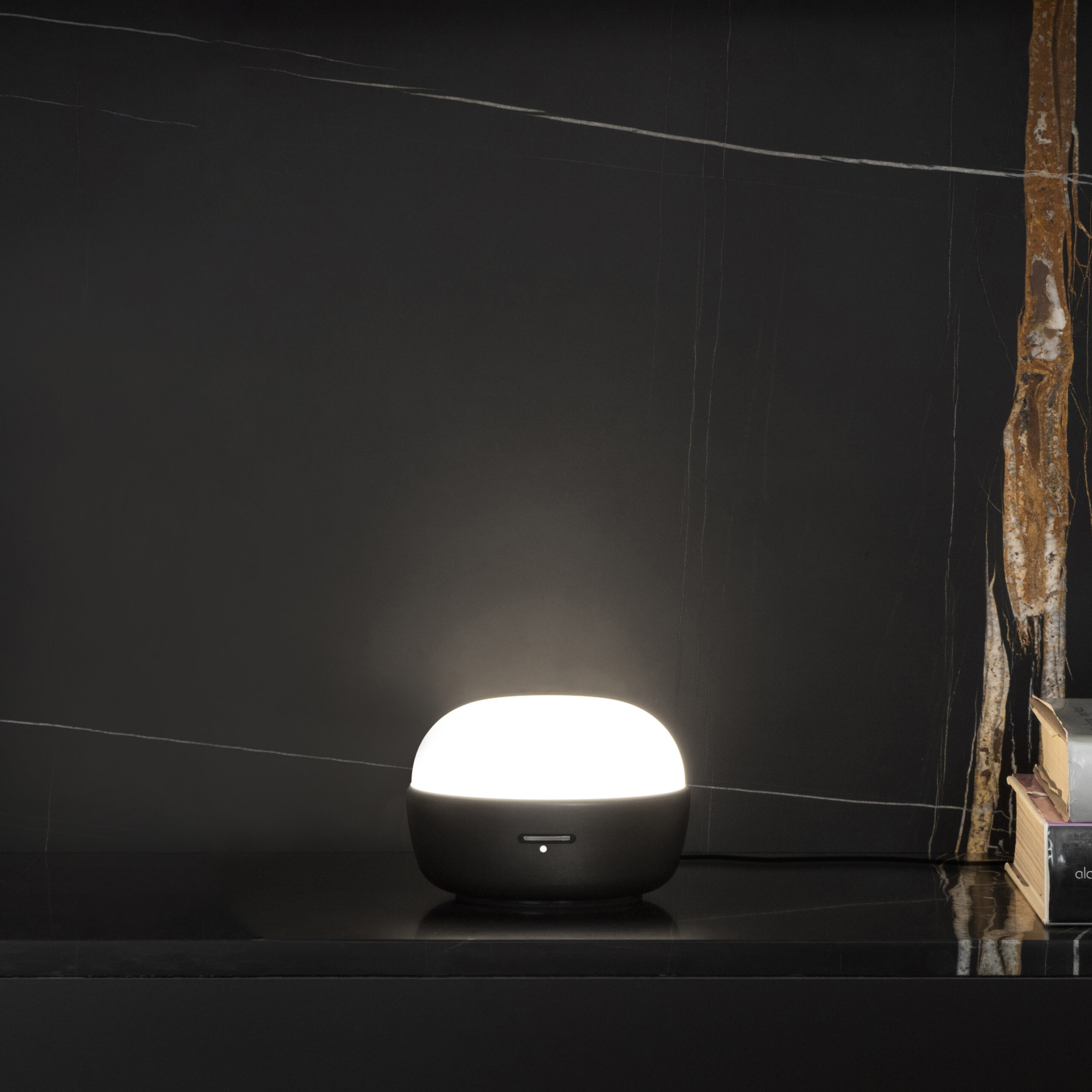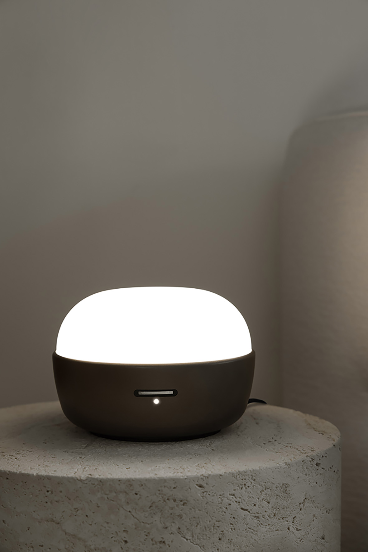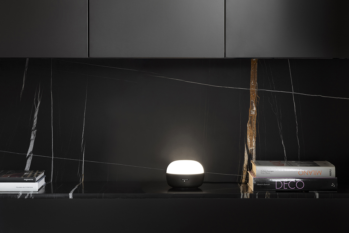 The table version is available in champagne, brushed bronze-nickel, and anthracite finishes.