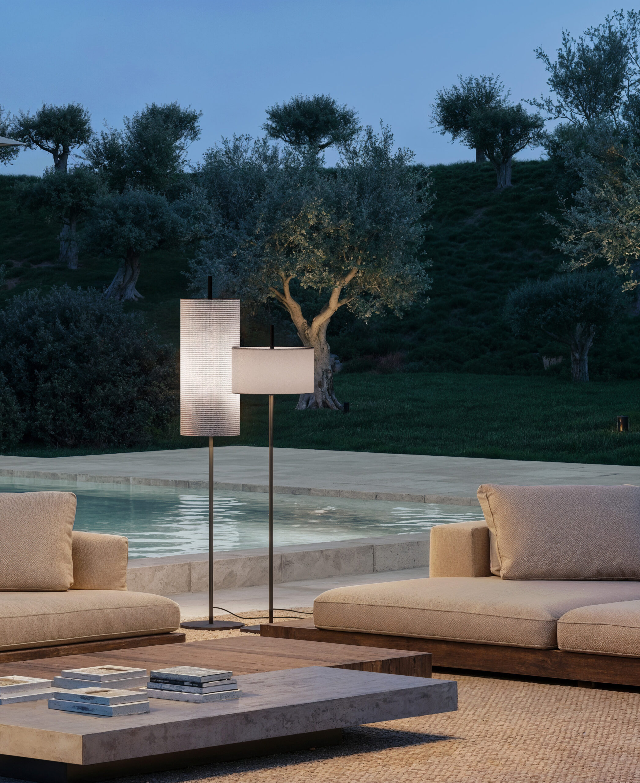 The outdoor lighting collection designed by Servomuto draws its inspiration from the natural world and, in particular, from the rigor and simplicity of the Typha, a plant typical of wetlands. Available in three different heights — small, medium, and large — each lamp can stand alone as a single luminous element or, when combined with the others, create a harmonious ensemble, like a glowing forest.