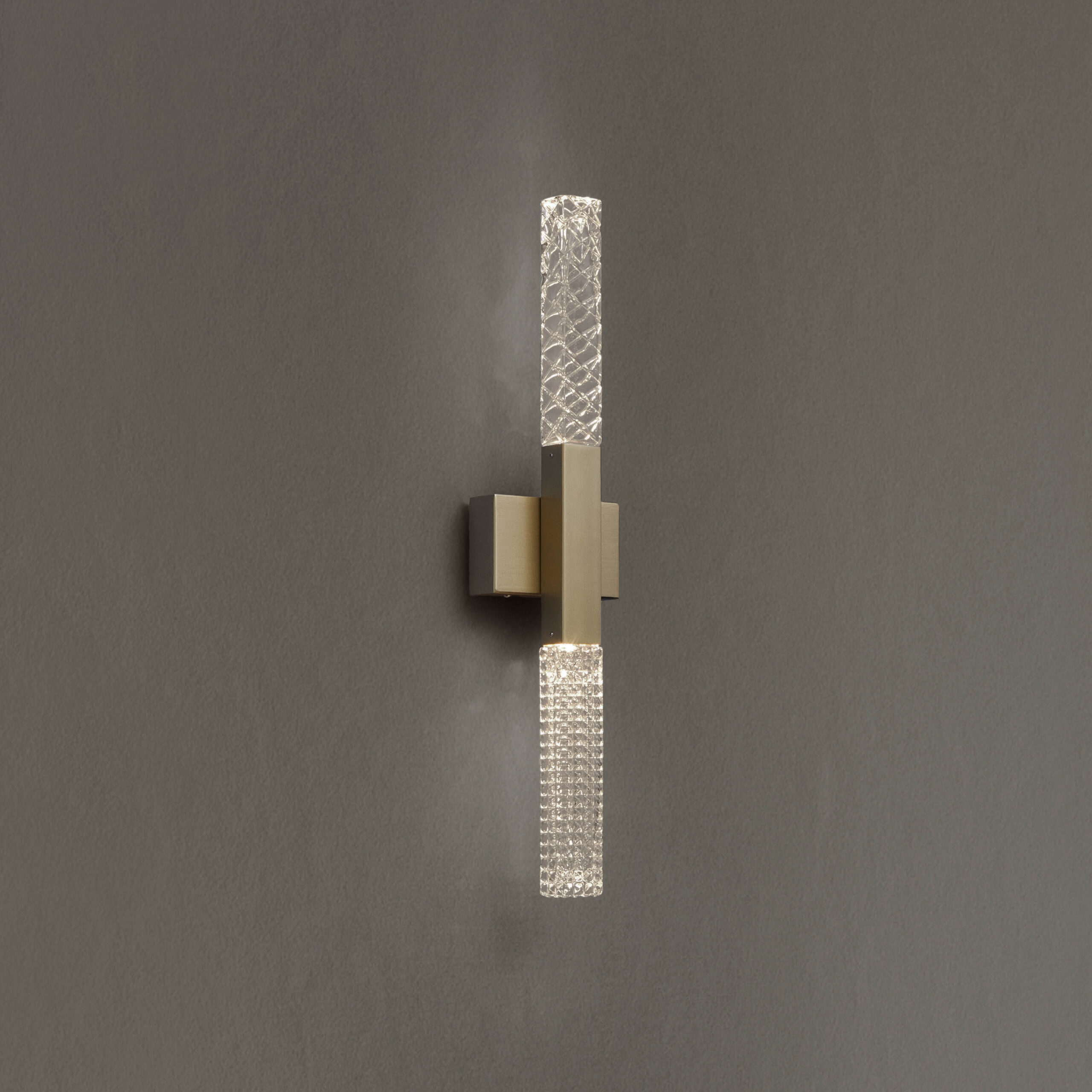 A collection of “jewel” lamps characterised by the combination of rectangular brass tubes and slanted cubes in engraved crystal, with two types of workmanship. The apparently random juxtaposition (hence the name “Mikado”) in fact follow a precise and balanced scheme. The LED sources, inserted in the tubes so as to showcase the preciousness of the crystal, make Mikado a high-performance decorative product that is compatible with home automation systems.