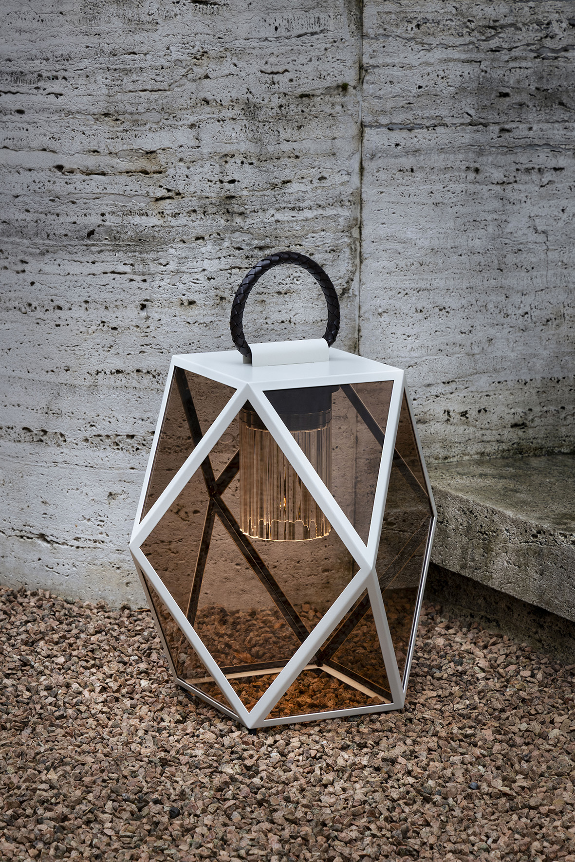In the new Muse Nomad, the wireless model, light radiates from above through an amber-colored plexiglass diffuser, creating a soft, subtle glow. The rechargeable version is also available in a small size—maximum versatility without sacrificing a touch of elegance outdoors.